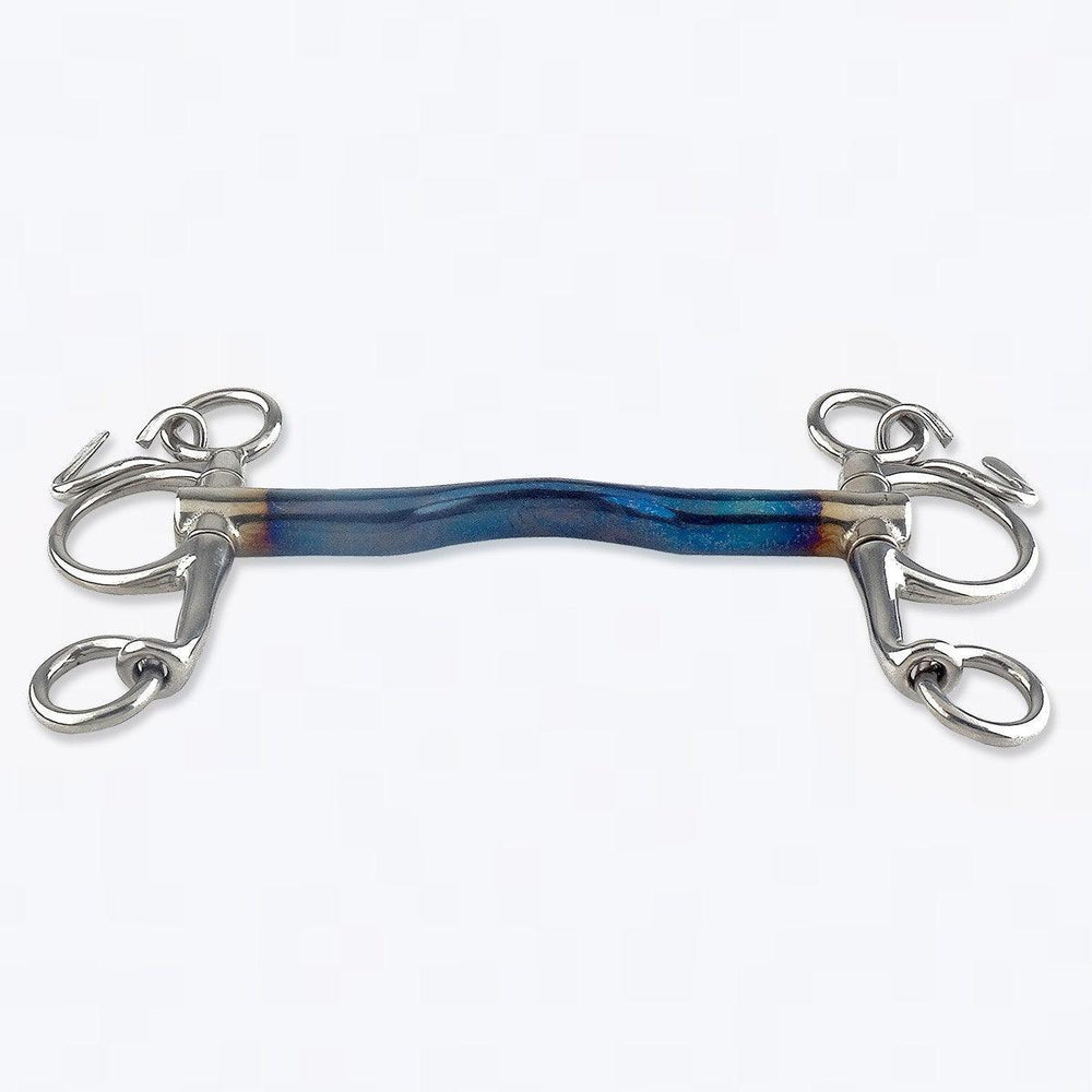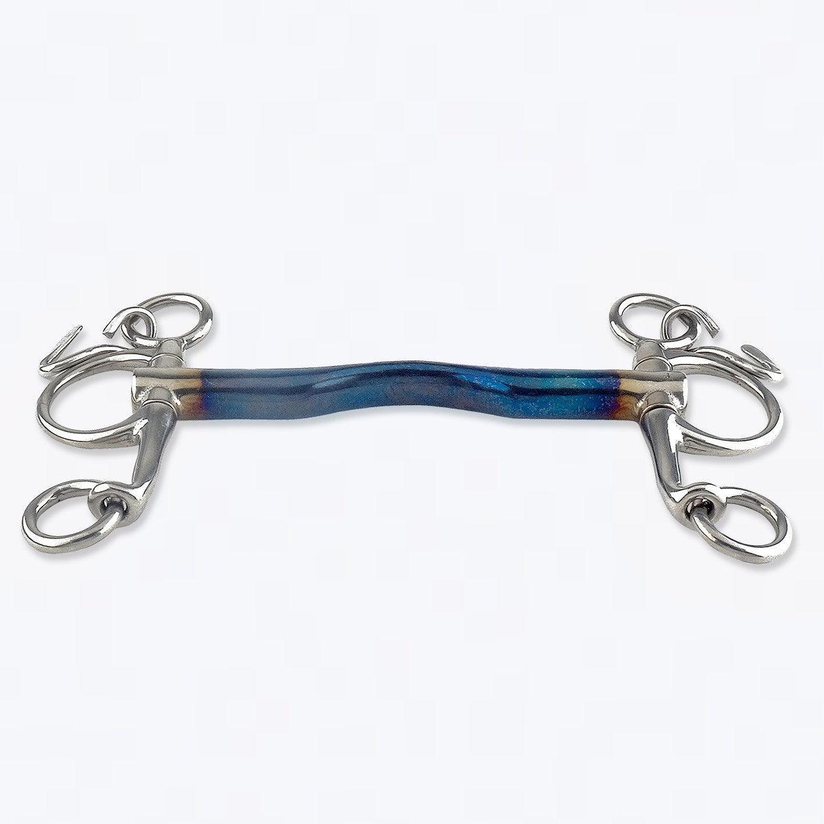 The Sweet Iron bits are made of steel and have a recognizable blue color. Sweet Iron will rust when it comes into contact with (air) humidity, the surface rust tastes sweet and naturally stimulates the saliva production. This will cause the horse to salivate more, which in turn will encourage a better acceptance of the bit.