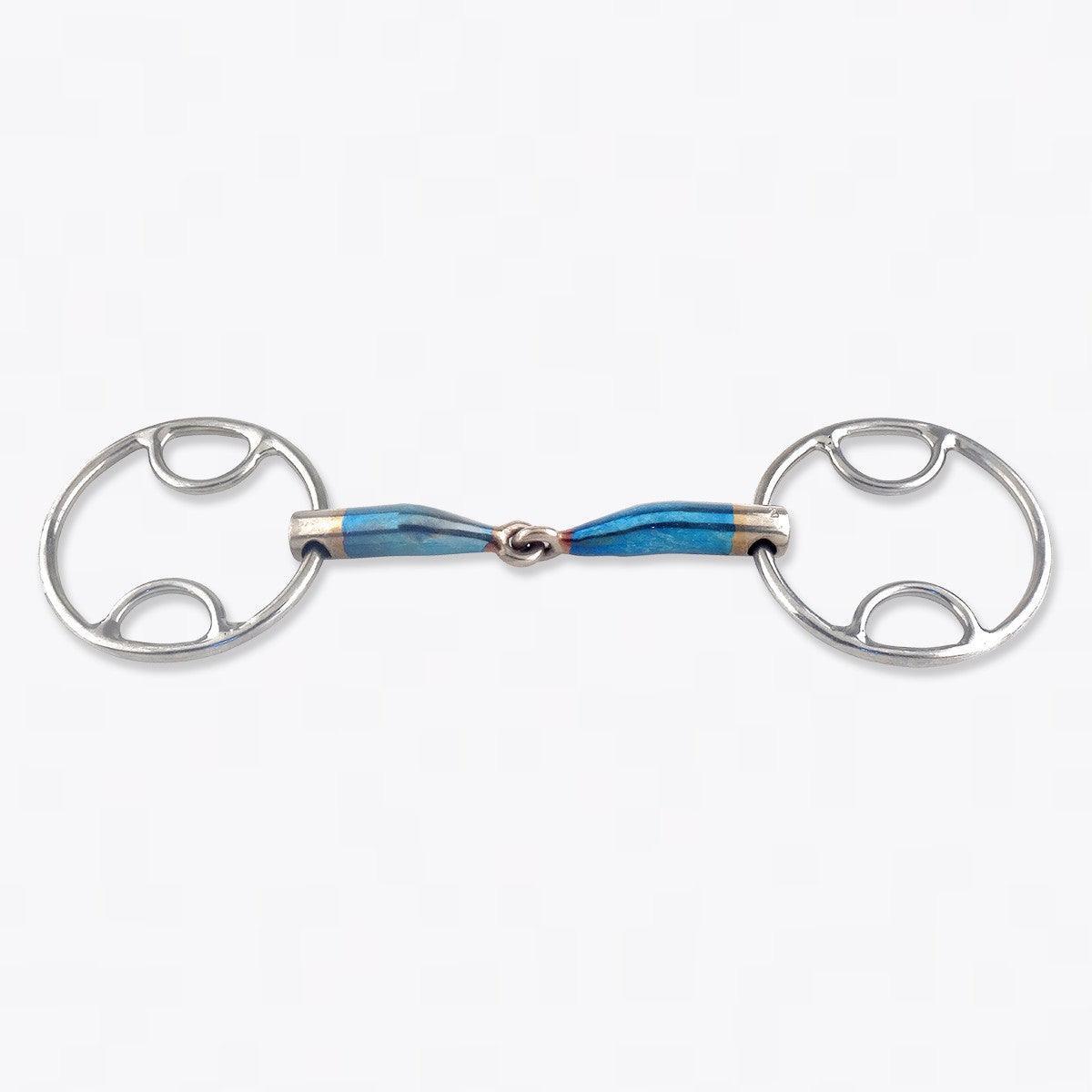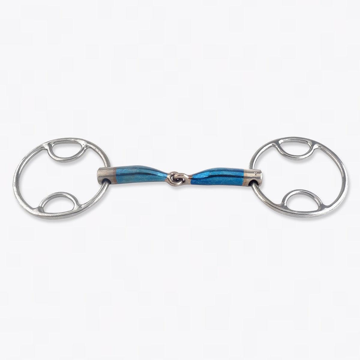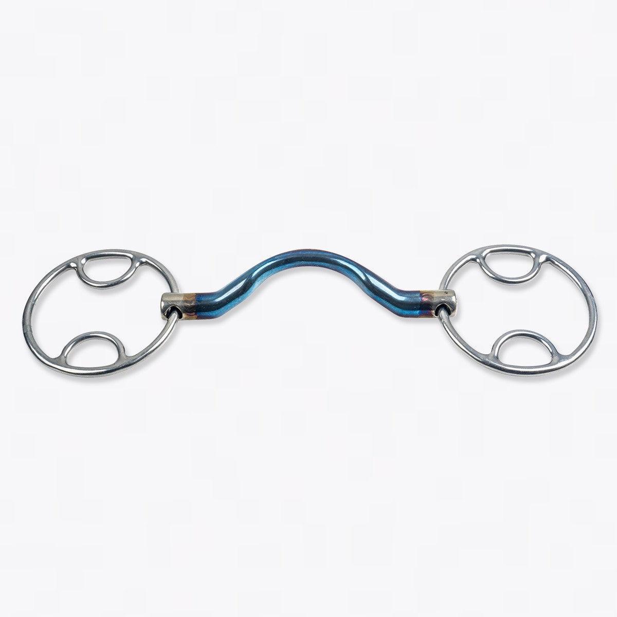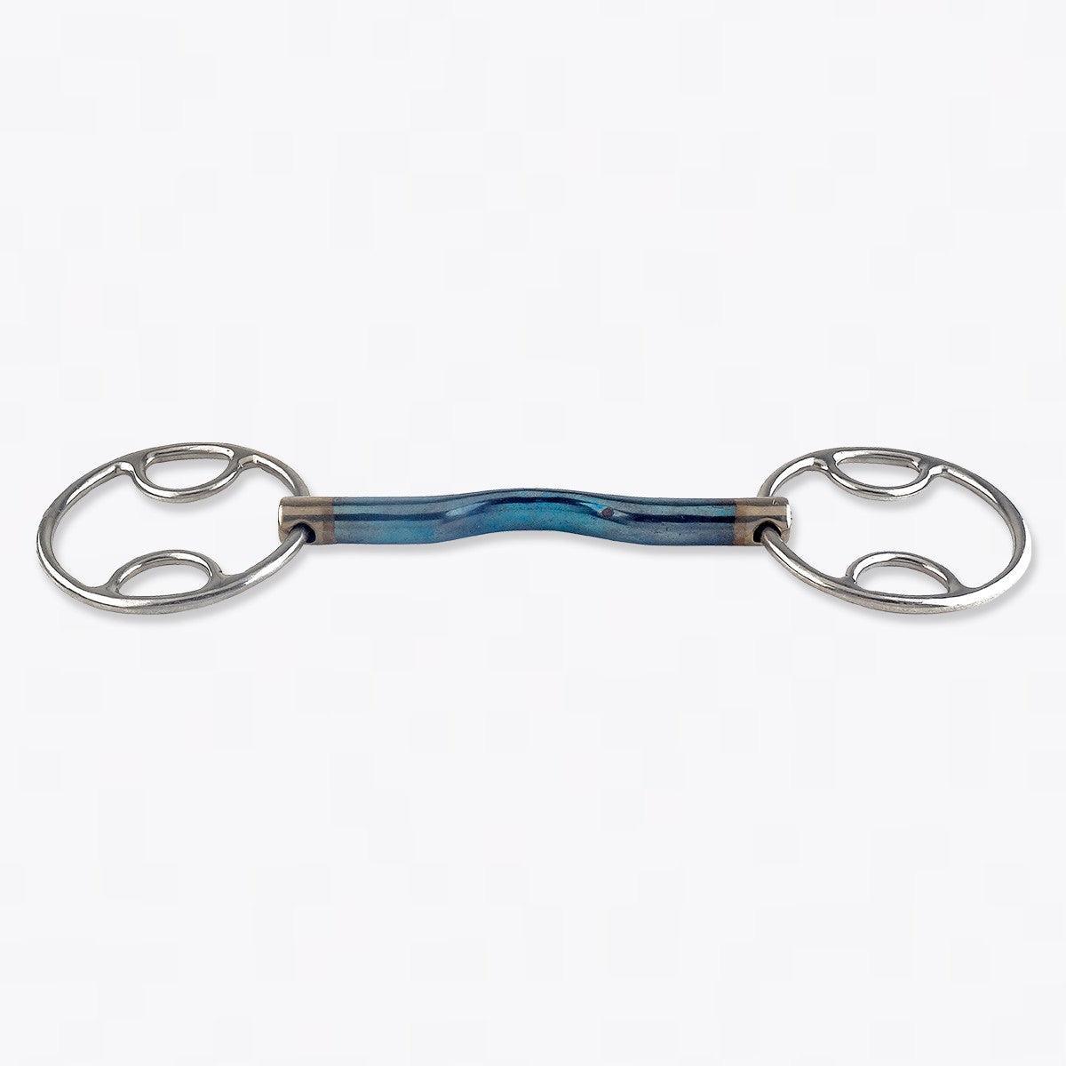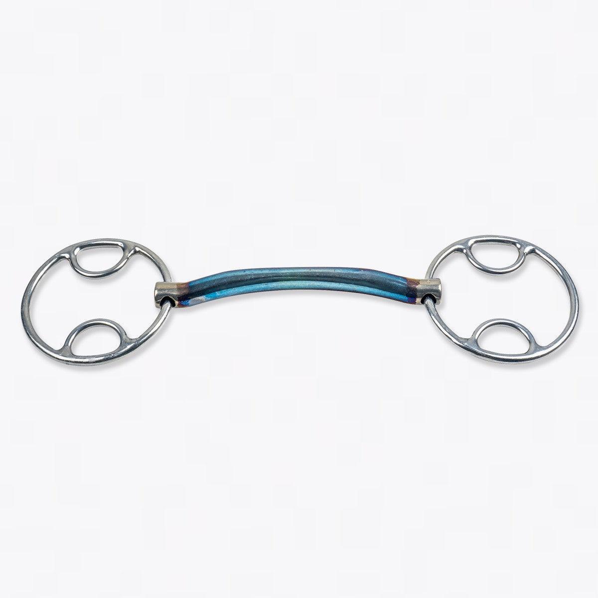 The Beval bit is an ordinary bit with extra eyes on the inside of the bit rings. This bit has a similar effect as a Pessoa bit and 3-ring bit but it works softer and has less leverage effect. The upper eye is used to attached the bit to the bridle. The bottom eye is for the reins.