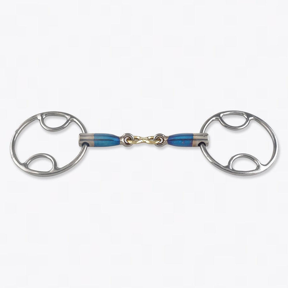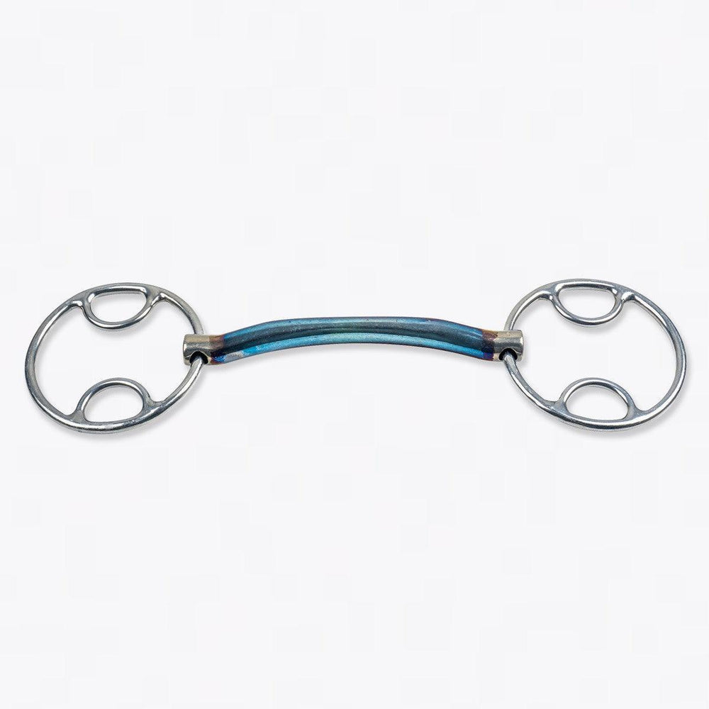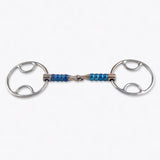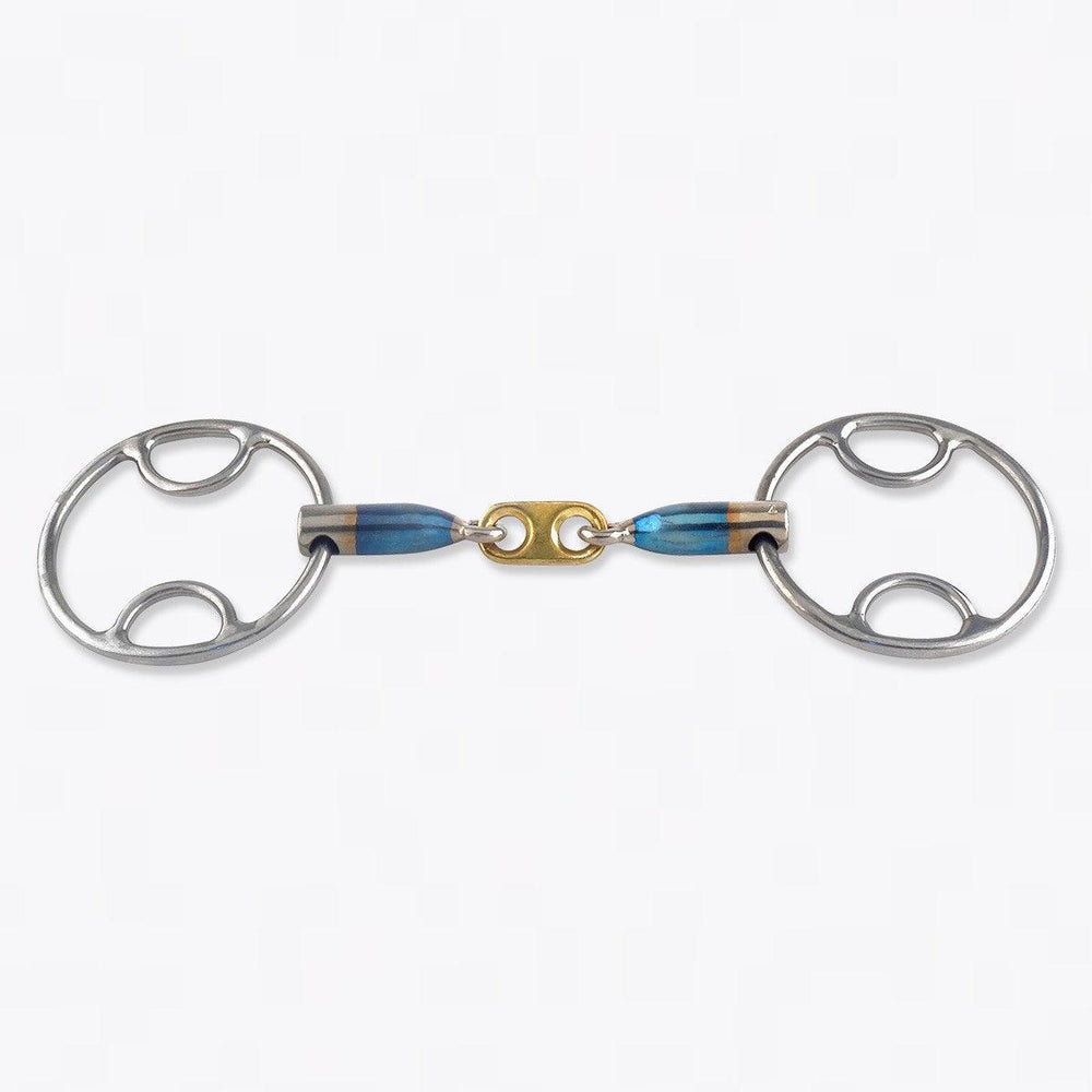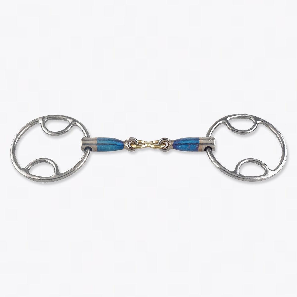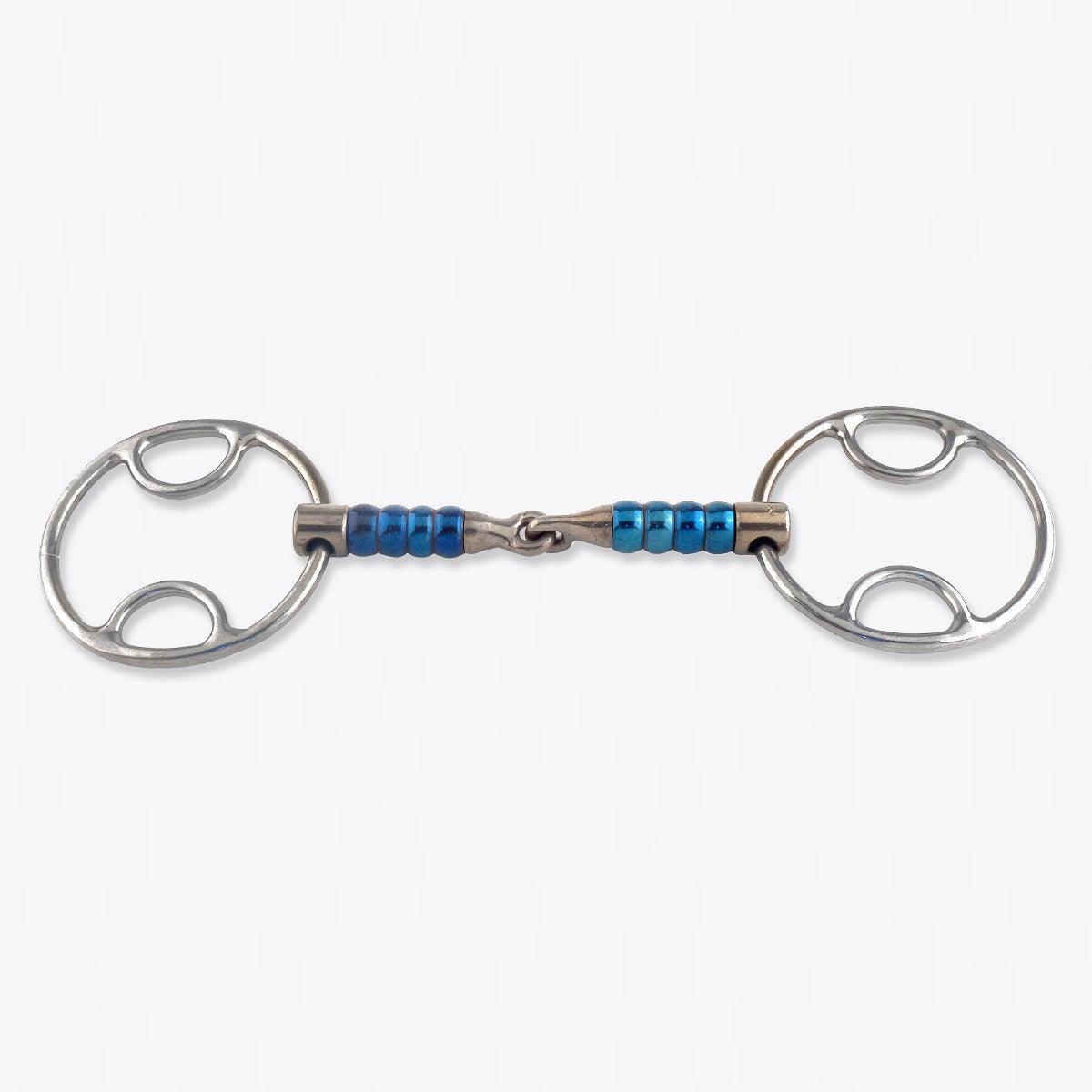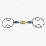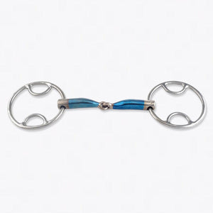 The Beval bit is an ordinary bit with extra eyes on the inside of the bit rings. This bit has a similar effect as a Pessoa bit and 3-ring bit but it works softer and has less leverage effect. The upper eye is used to attached the bit to the bridle. The bottom eye is for the reins.
