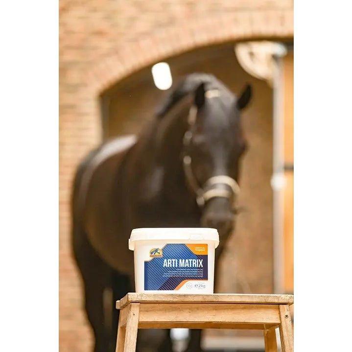 Cavalor Arti Matrix is a comprehensive solution for bone, joint capsule, tendon, cartilage and synovial fluid problems that mainly affect horses with sensitive musculoskeletal systems or in heavy work. Acute or structural joint problems change specific nutrient requirements.