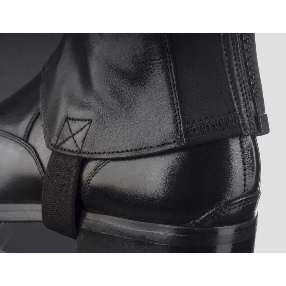EGO7 half chaps are crafted of smooth, highest quality leather with E-tex panel and double-elastic gusset along the rear zipper for extreme wear-resistance.