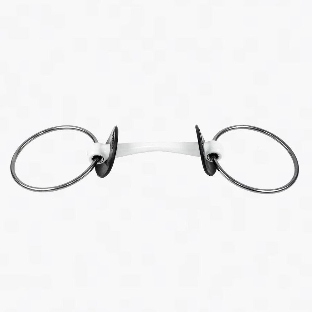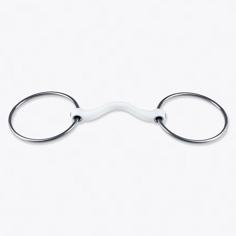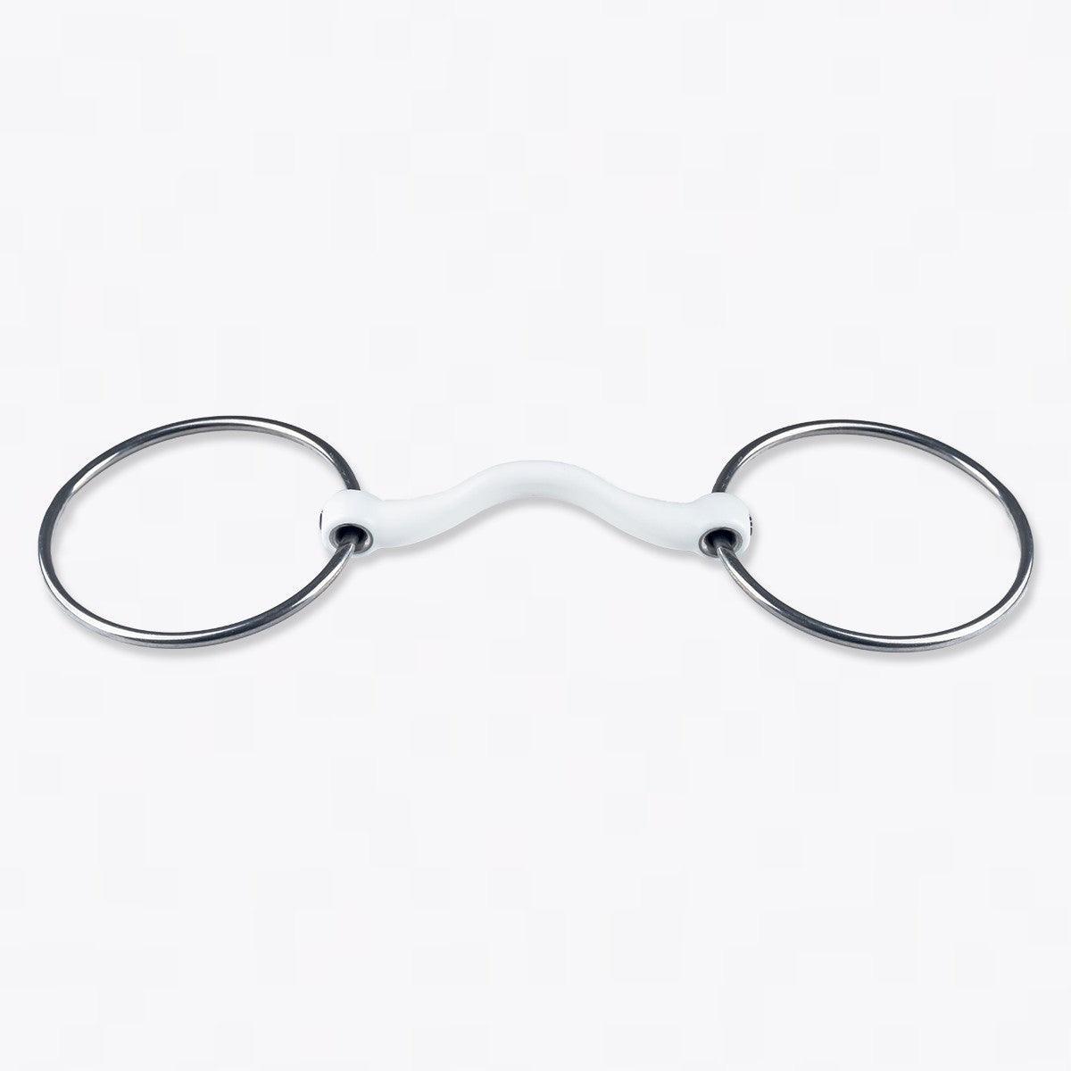 The loose ring is a standard cheekpiece. This cheekpiece has loose rings which allows the bit to move more freely in the mouth so that many horses accept this bit well. Because of the loose rings, the aid is conveyed indirectly. To prevent lips from getting pinched, it is advisable to provide the bit with bit rings. The large rings provide greater pressure distribution on the cheeks. This makes a horse easier to turn and a bit cannot be pulled through the mouth so easily. In addition, a slight leverage effect can be obtained with these large rings.