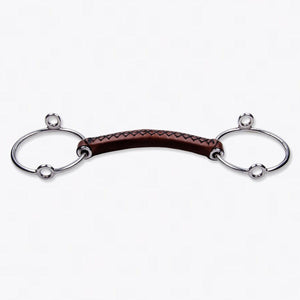 The leather bits are a remarkable sight in the TRUST equestrian collection. The core of the leather bit is made of reinforced nylon. The leather that is stitched around this core, is naturally tanned without chemicals. The saliva production softens the leather bit and makes it more pleasant for the horse. The flexibility in combination with the taste of the leather, makes the bit particularly suitable for horses with a sensitive mouth.