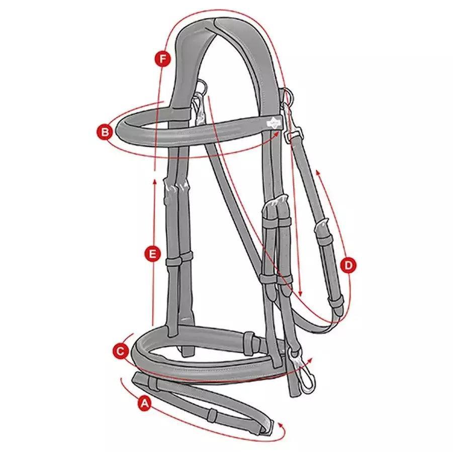 Size A - Flash B - Browband C - Noseband D - Throat Lash E - Cheek Pieces F - Head Piece