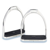 This is the English variety of the basic stirrup model, manufactured using the lost wax cast method. Available in sole widths of 11 cm /4 1/4". Due to its widened and rough base this stirrup iron can also be used without rubber pad.