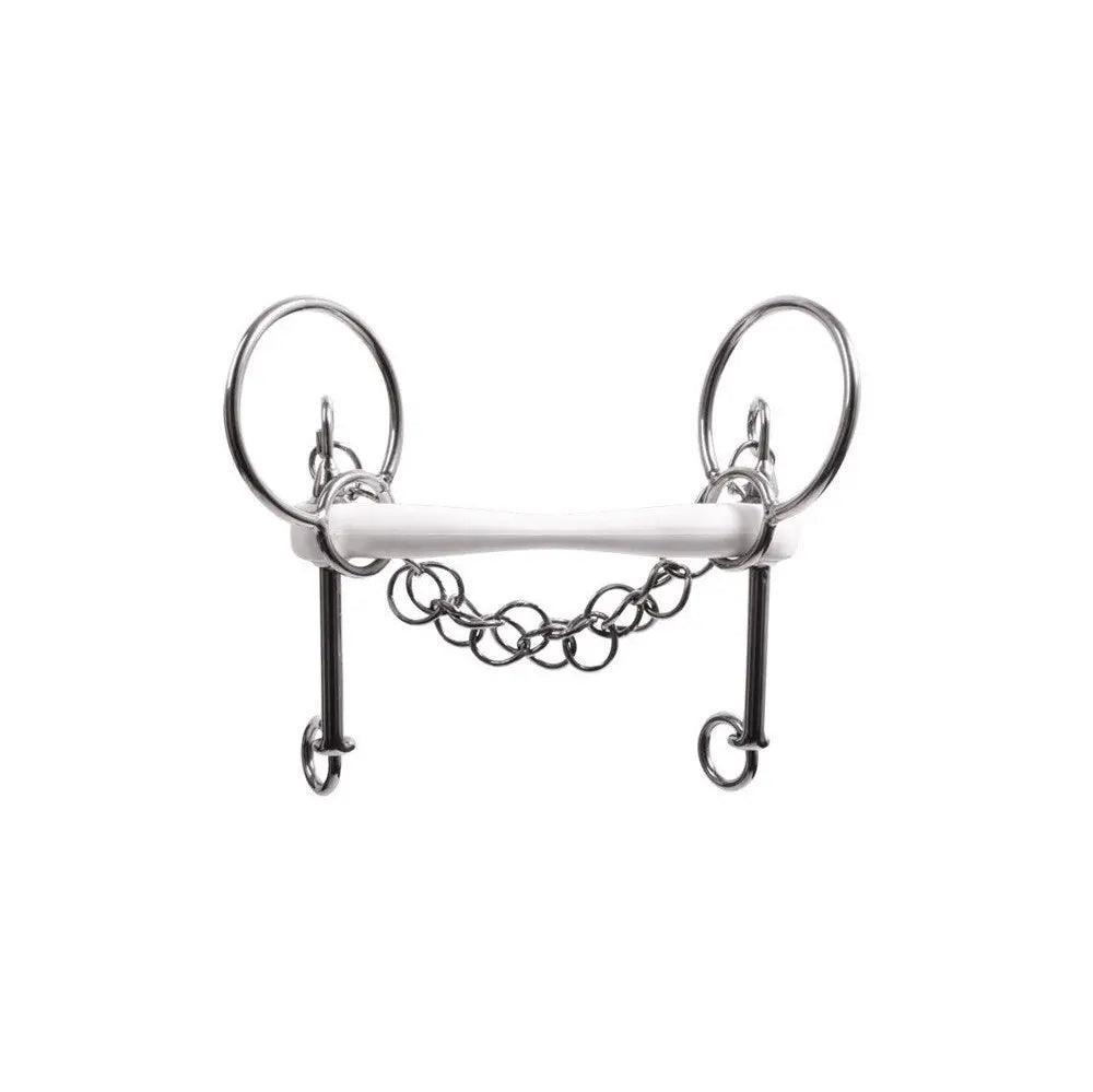 The Inno Sense Mullen is a straight bar that slightly bends forward. This mouthpiece is fabricated of synthetic material. The bit has a rigid core that makes the mullen bar not flexible but the material around it gives the bit a soft touch.